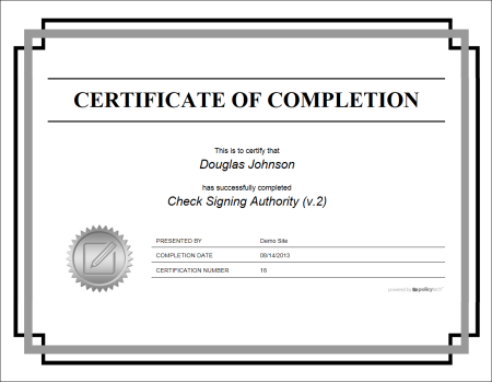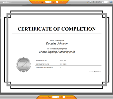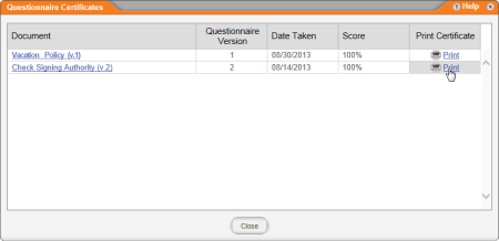 Note: For a certificate to be available for a questionnaire, the document owner who created the questionnaire must have enabled the certificate option in the questionnaire settings.