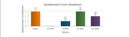 - Include Graphs: Adds a graph to the report's Summary area.The graph shows the number of users who scored within each of five different score ranges.