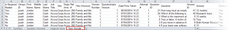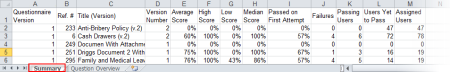 If you selected Microsoft Excel Raw, a separate browser window opens along with a Windows or Mac system prompt. After opening or saving the file, close the browser window. The exported Excel file contains the following two worksheets: Summary, Question Overview. If Include User Results is selected, two additional worksheets—Assigned Usersand User Details—are included.