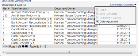 - By default, the document sort order in the report is ascending by title. To change what the documents are sorted by, click a different column heading. Click the same column heading again to reverse the sort order.