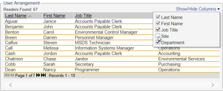 - To change the default report columns, click Show/Hide Columns, and then click to clear a check box.