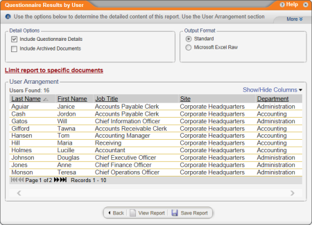 - To view the report using its default settings, click View Report. The report opens in a separate browser window where you can view, print, and save the document to disk in several different formats.