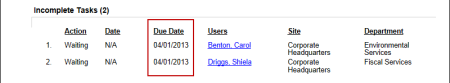 Shows the status of all tasks for documents in the collaboration status. You can choose to include only those tasks that are incomplete, overdue, or completed.