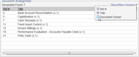 - To change the default report columns, click Show/Hide Columns, and then click to clear a check box.