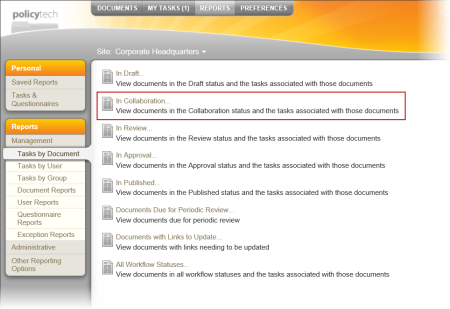 - Click Management, click Tasks by Document and then click In Collaboration.