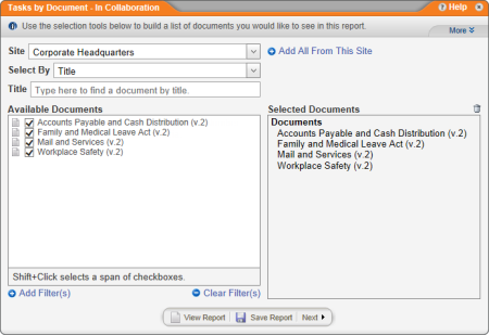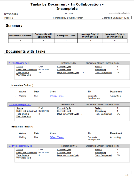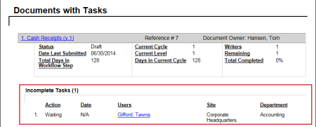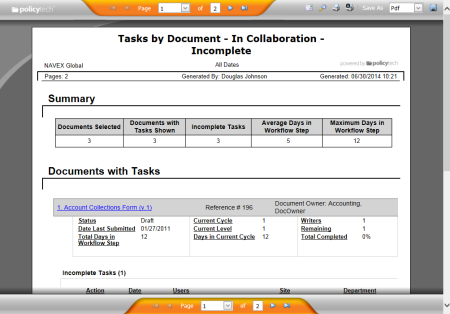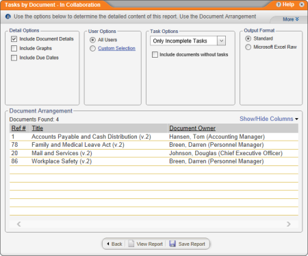 Report: Tasks by Document - In Collaboration