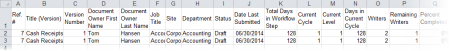 - By default, the document sort order in the report is ascending by title. To change what the documents are sorted by, click a different column heading. Click the same column heading again to reverse the sort order.