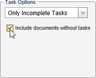 - By default, only the documents from those you selected that have tasks matching the current Task Options filters are included in the report. To include all selected documents in the report, even those without matching tasks, select the Include documents without tasks check box.
