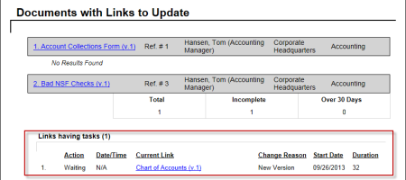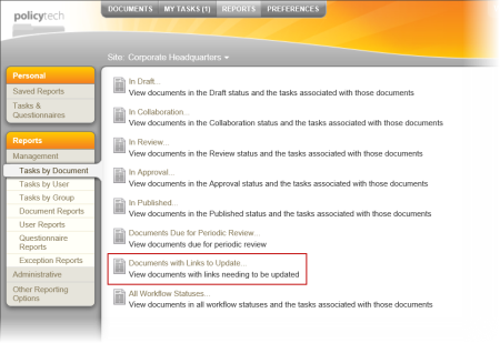 - Click Management, click Tasks by Document and then click Documents with Links to Update.