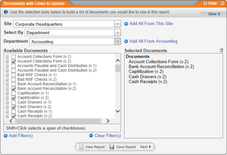Report: Documents with Links to Update