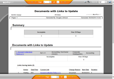 - Click a document link to open that document in PolicyTech.