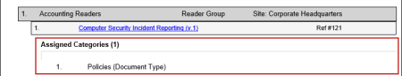 - Assigned Categories: For each document listed in the report, adds a list of assigned categories.