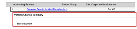 - Change Summary: For each document listed in the report, shows the comments added by the document owner upon submitting the document for review or approval.