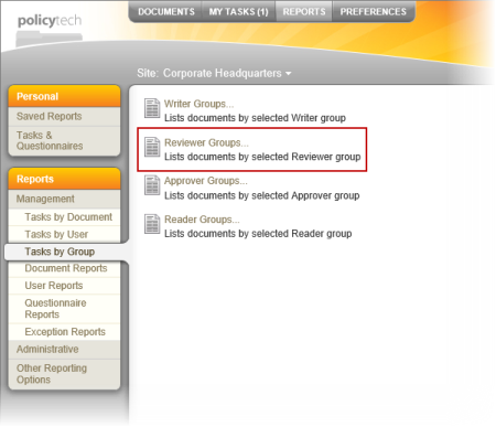 - Click Management, click Tasks by Group, and then click Reviewer Groups.