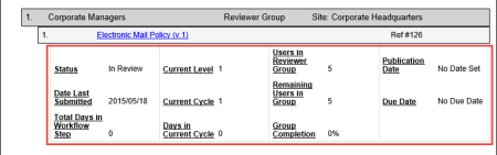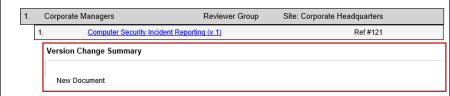 - Change Summary: For each document listed in the report, shows the comments added by the document owner upon submitting the document for review or approval.