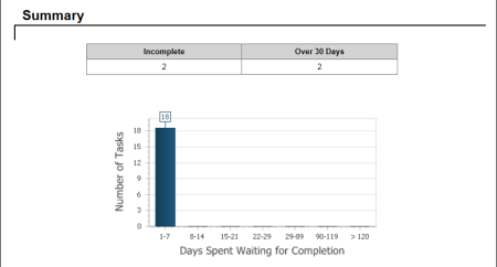- Include Graphs: Adds a graph to the report's Summary area. The graph shows the number of days the selected users' tasks have been waiting for completion.