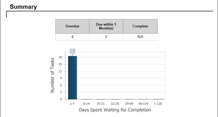 - Include Graphs: Adds a graph to the report's Summary area. The graph shows the number of days the selected users' tasks have been waiting for completion.