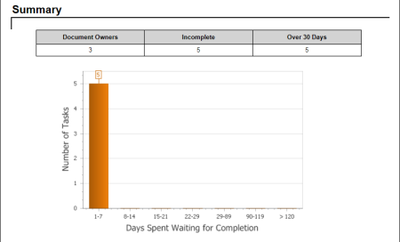- Include Graphs: Adds a graph to the report's Summary area. The graph shows the number of days the selected users' tasks have been waiting for completion.
