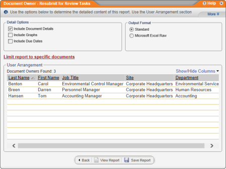 Report: Document Owner - Resubmit for Review Tasks