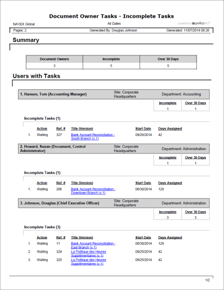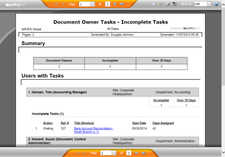 - Click Management, click Tasks by User, and then click Document Owner - Resubmit for Review Tasks.