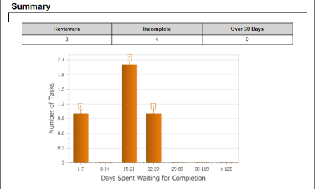 - Include Graphs: Adds a graph to the report's Summary area. The graph shows the number of days the selected users' tasks have been waiting for completion.