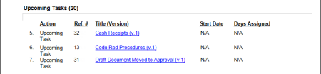 If you select Incomplete Tasks with Upcoming Levels, information will be shown about any tasks that assigned reviewers have not yet received notification for. These could be tasks for documents that have not yet reached the reviewer status or tasks for documents currently in review but that have not yet reached a reviewer's assigned level.