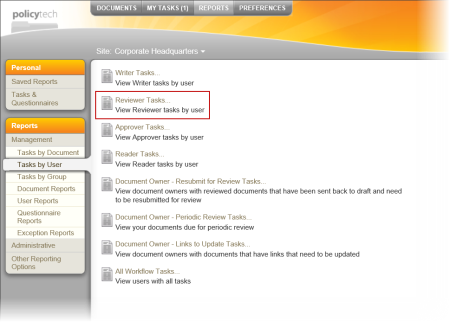 - Click Management, click Tasks by User, and then click ReviewerTasks.