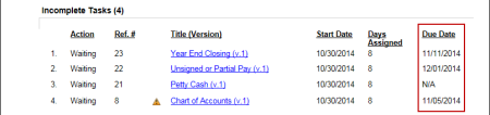 Note: The Duration column shows how many days an incomplete task has been assigned or how many days it took to complete a task.