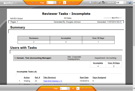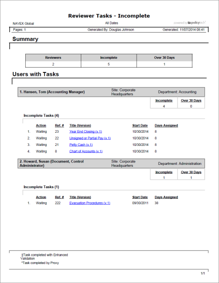 Report: Tasks by User - Reviewer Tasks