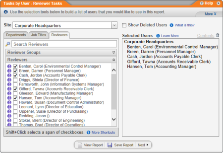 - Select the users you want included in the report (see Selecting Users for help).