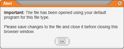 - An alert appears stating that the uploaded file has been renamed to match the document title you typed in the first step of the Properties Wizard. Click OK.