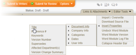 - (Optional) Place your cursor in the document where you want to insert a document property field. Click Editor Tools, click Insert Properties, and then find and insert a document property (see Inserting Document Properties for detailed instructions).