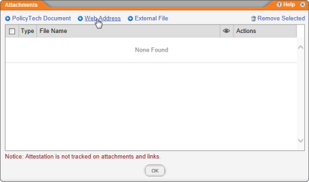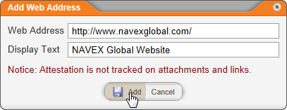 Adding a Web Address Link in the Attachments Window