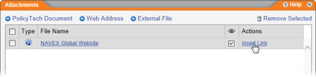Note: You can come back to the Attachments window later to insert the link into the document. See Managing Attachments and Links for details.