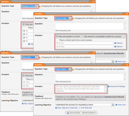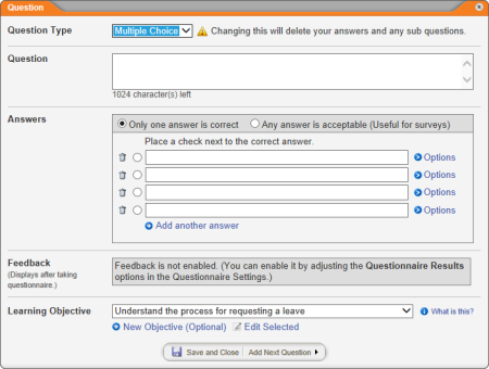 - To create additional questions and, optionally, learning objectives, repeat steps 5 through 11 as many times as necessary.