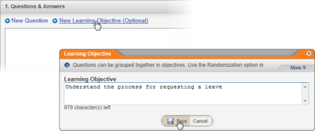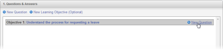 - (Optional) If you want to include a learning objective as a heading for the first group of questions, click New Learning Objective, type the objective, and then click Save.