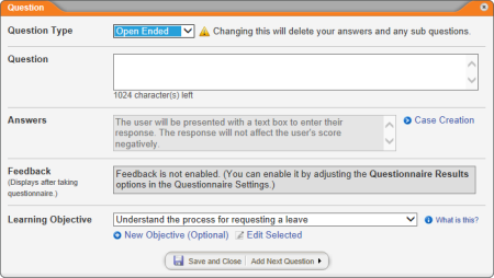 Important: If you have not already done so, consider planning the questionnaire content before starting to add questions and answers. See Planning a Questionnaire for details.