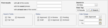 Advanced Search provides more options for narrowing a search. For example, you can search for documents within a specific date range, and you can search across all sites at the same time.