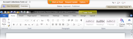 Note: An update request is posted as a discussion in the document. For additional information about discussions, see Working with Document Discussions.