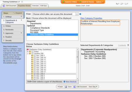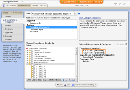 Source: The document creator assigns categories to a document while creating it. (Properties Wizard > 2. Departments & Categories > [category name])