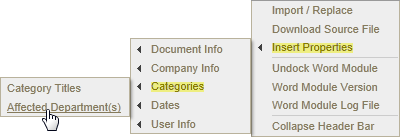 Note: Inserting affected departments from the Categories submenu is the same as inserting them from the Document Info submenu.