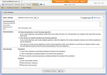 Note: If you need to change the questionnaire settings in an approved document, either create a new version of the document or ask a document control administrator to change the questionnaire for you.
