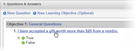 Important: Deleting a learning objective also deletes all questions currently assigned to that objective. Deleting a question also deletes its answers and any subquestions attached to those answers.