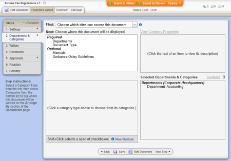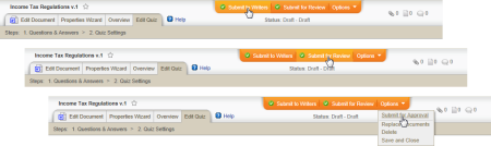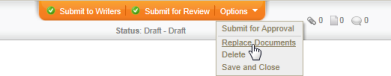 - Submit the document to writers, for review, or for approval (see Submitting a Document to Writers, Reviewers, or Approvers).