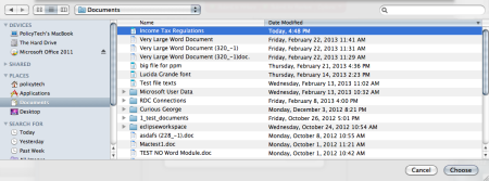 - In the Mac Finder, find and click the document you want uploaded, and then click Choose.