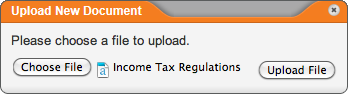- The file name now appears in the Upload New Document window. Click Upload File.