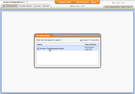 Note: You can import (re-upload) an external document to replace the contents of the PolicyTech file at any time. See Importing Content for details.