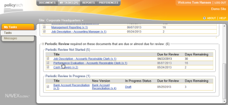 - Click MY TASKS, and then, in the Periodic Review area, click the document title.