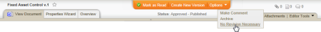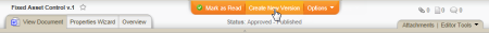 - If the document needs to be revised, click Create New Version to make a copy of the approved document and place it in draft status. Make updates, and then move the new version of the document through the review and approval process as you normally would. Once the new version is approved, the previously approved version is archived.