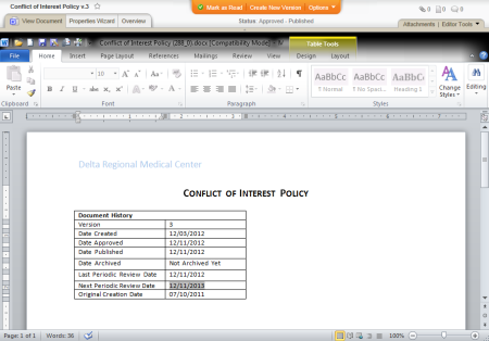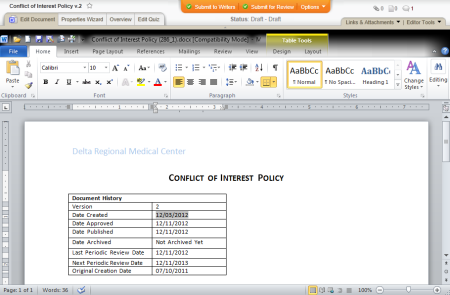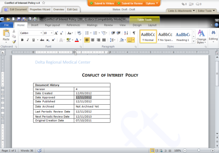 Note: Because the next periodic review date is not set until a document is approved, this field contains "Not Approved Yet" before the document is approved. Also, assigning a periodic review date is optional. If one is not assigned, the inserted field contains "No Review Date."